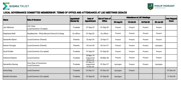 For full details of the governance of The Sigma Trust including Members and Trustees and LGCs please click here for the Sigma Trust website governance pages.